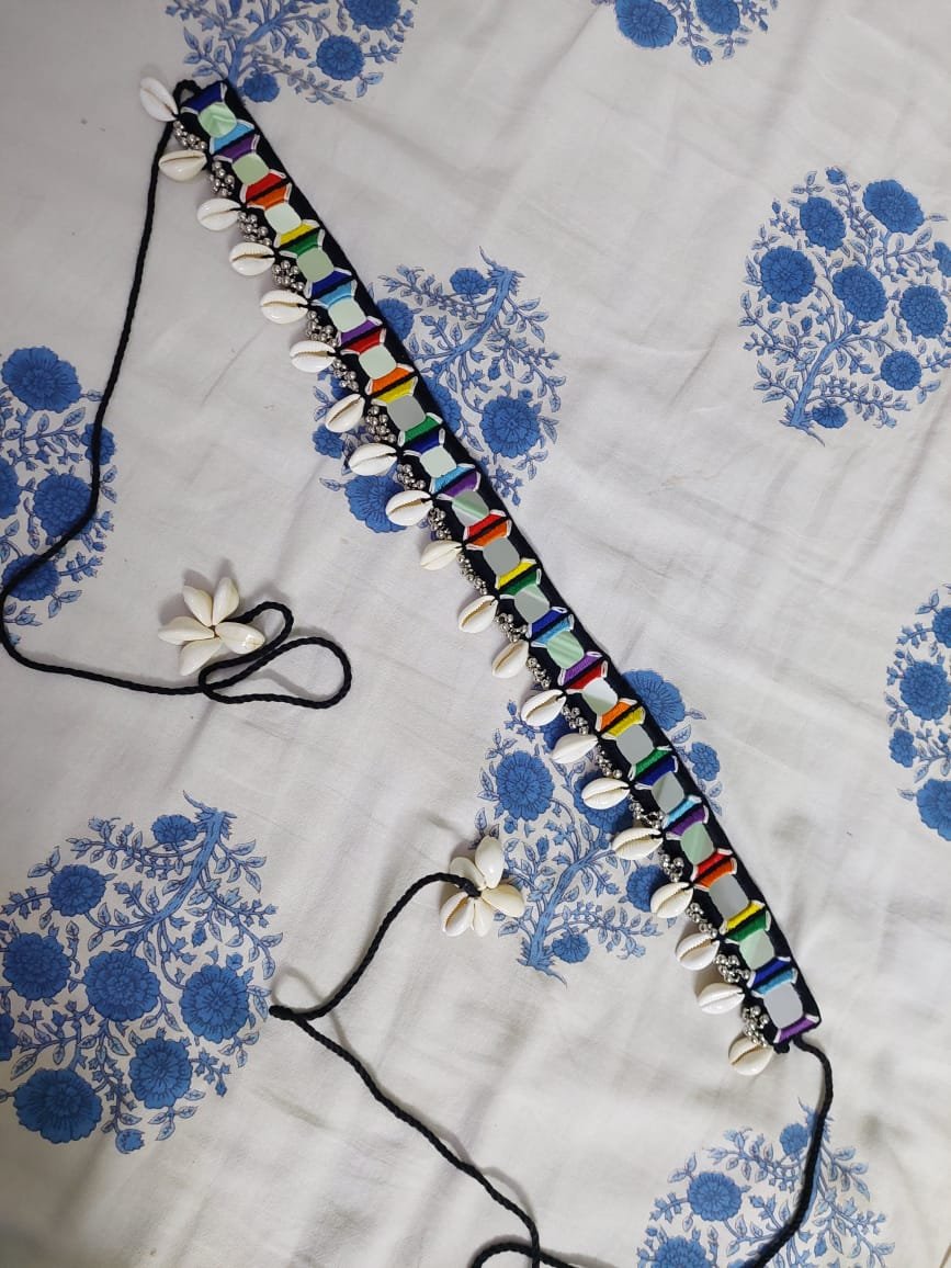 Introducing the Aradhya Waist Belt, a beautifully handcrafted accessory designed to elevate your festive and traditional outfits. Made using colorful mirror-work squares and paired with antique silver beads, this belt blends traditional artistry with modern styling.