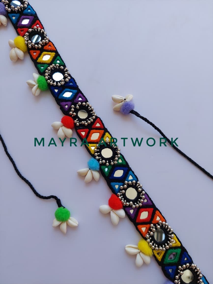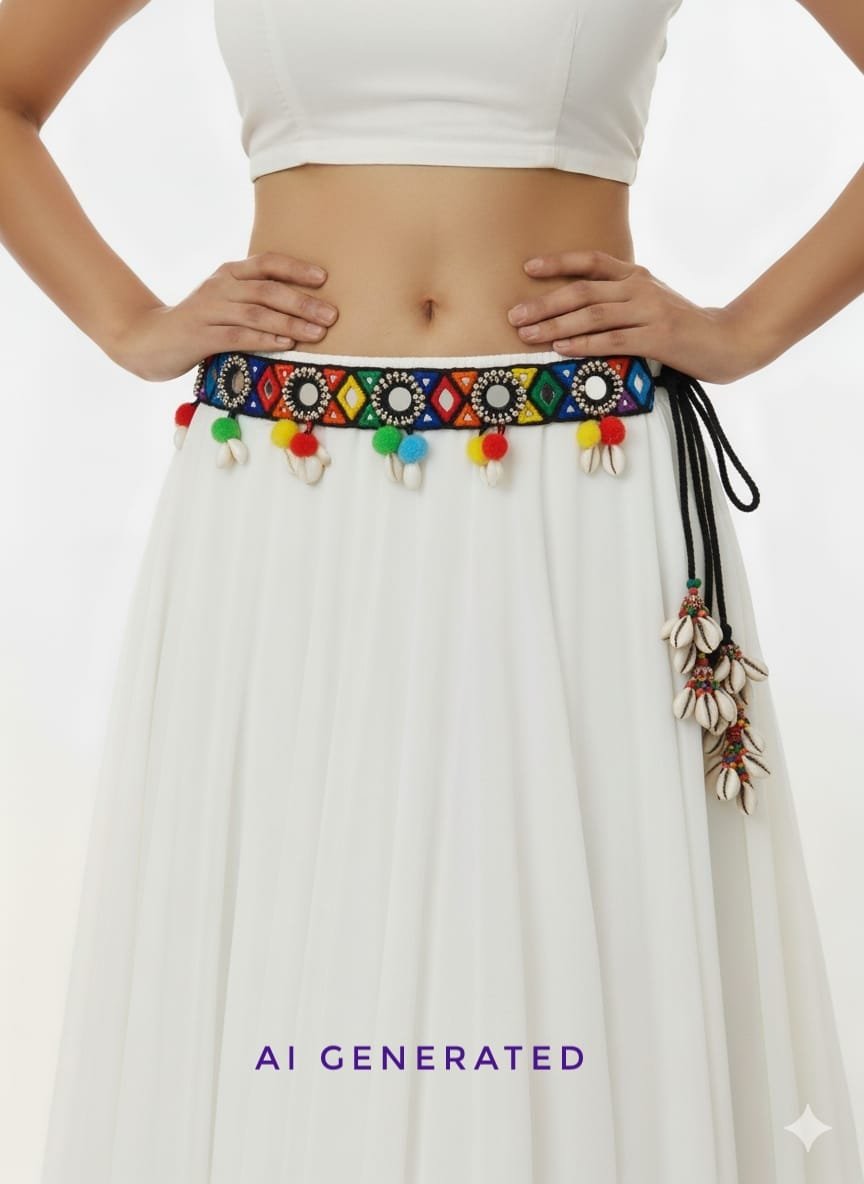 The belt comes with a long adjustable dori, allowing you to tighten or loosen it for the perfect fit. Whether you’re styling it with a lehenga, Navratri chaniya choli, skirt, or fusion wear, this waist belt adds a bold and vibrant touch to your entire look.